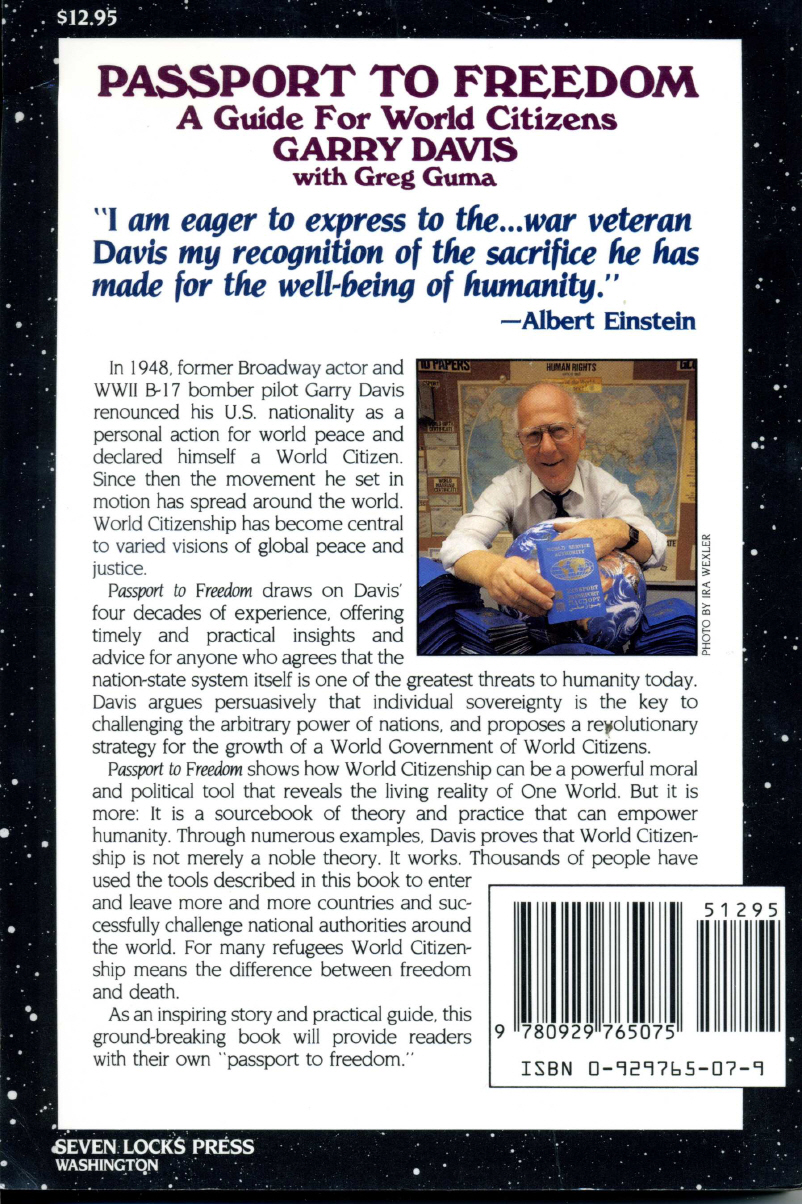 Passport to Freedom draws on Davis's four decades of experience, offering timely & practical insights & advice for anyone who agrees that the nation-state system itself is one of the greatest threats to humanity today. Davis argues persuasively that individual sovereignty is the key to challenging the arbitrary war power of nations, & proposes a revolutionary strategy for the growth of a democratic World Government of World Citizens for world peace.