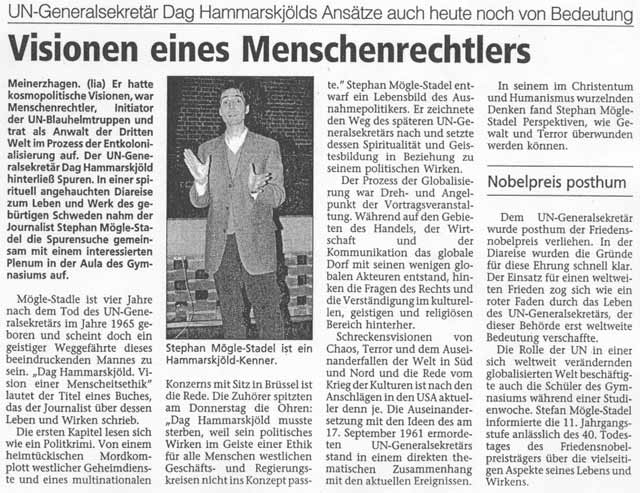 "Visionen eines Menschenrechtlers"erschienen im September 2001 in WR - Westfälische Rundschau |