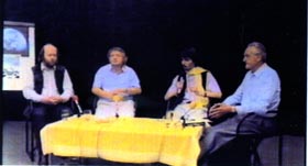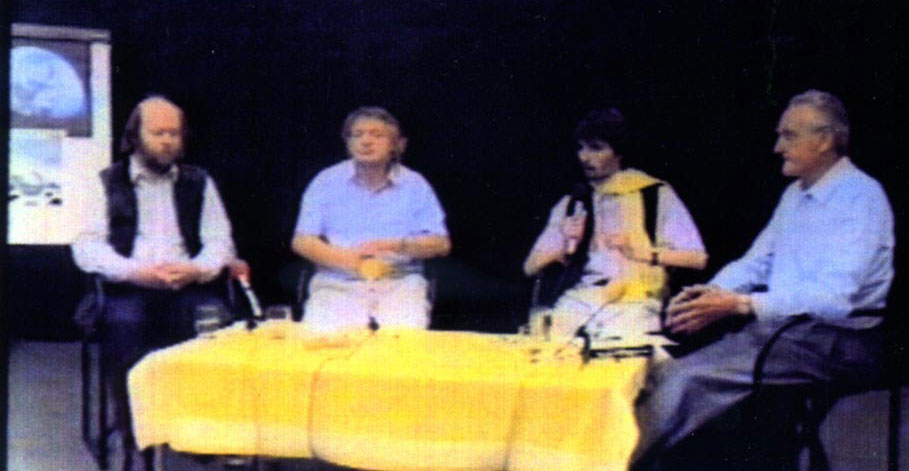 TV Fernsehstudio-Diskussion mit Prof. Rudolf Bahro, Dr. Herbert Gruhl, Stephan Mögle-Stadel und Prof. Rüdiger Lutz aus dem Studio Ludwigshafen. Eine Produktion von Terra Media TV und World Citizen Foundation (alle Rechte vorbehalten)