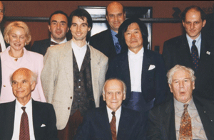 Lord Yehudi Menuhin, Prof. Ossip Flechtheim, Dr. Thor Heyerdahl und Prof. Yehezkel Dror, mit denen er auch in NGO-Projekten zusammenarbeitete. |