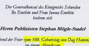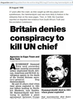 ![]() SMS enthüllte 1999 im Buch "Dag Hammarskjöld. Pionier einer Menschheitspolitik namentlich die (MI-6) Mörder von Hammarskjöld, sowie die Namen von Dags ehem. OSS- Mitarbeitern (Link ALV-Shop) |